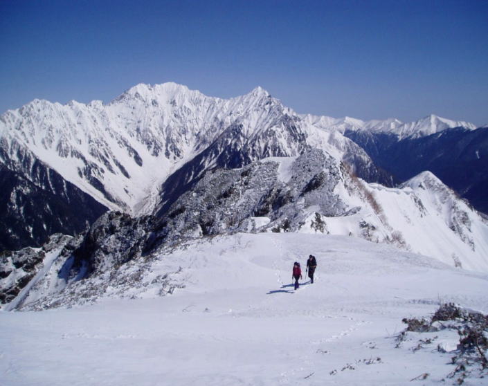 予想通りというか金曜日は上高地でも吹雪となり10センチほどの積雪があったそうで、更には入山した23日も山は雪雲に覆われて強風が吹いていましたが、今日は素晴らしい快晴。穂高の大展望が得られました。