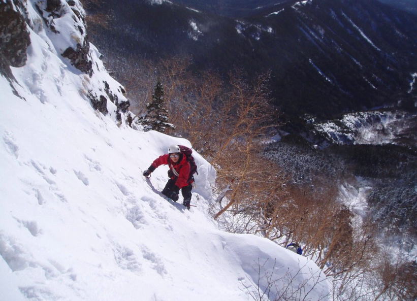 強〜い冬型の気圧配置となり、寒い週末。昨日は良い斜面を探して中岳沢をウロウロ。吹き溜まりの雪はあるんですが、全体に積雪量は未だ少なく、滑落停止をすると雪の下から地面が露出する始末。夜は雪。
