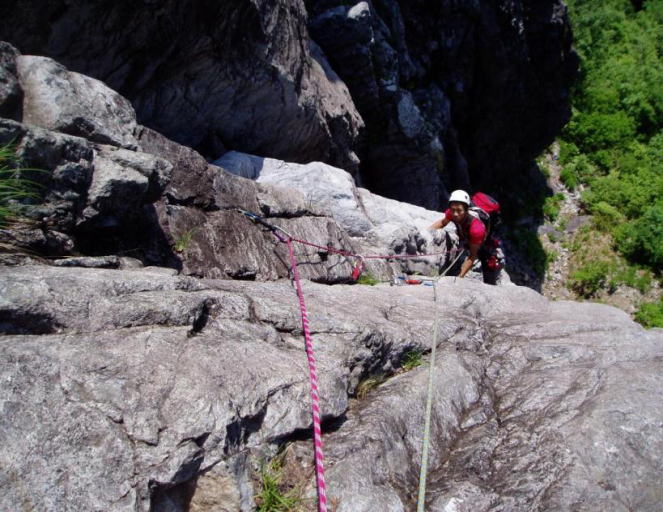 土日とも午後遅くからは雷雨との予報のため、予定したルートの完登は諦めて、土曜のうちに登れるところまで登って下降することに。