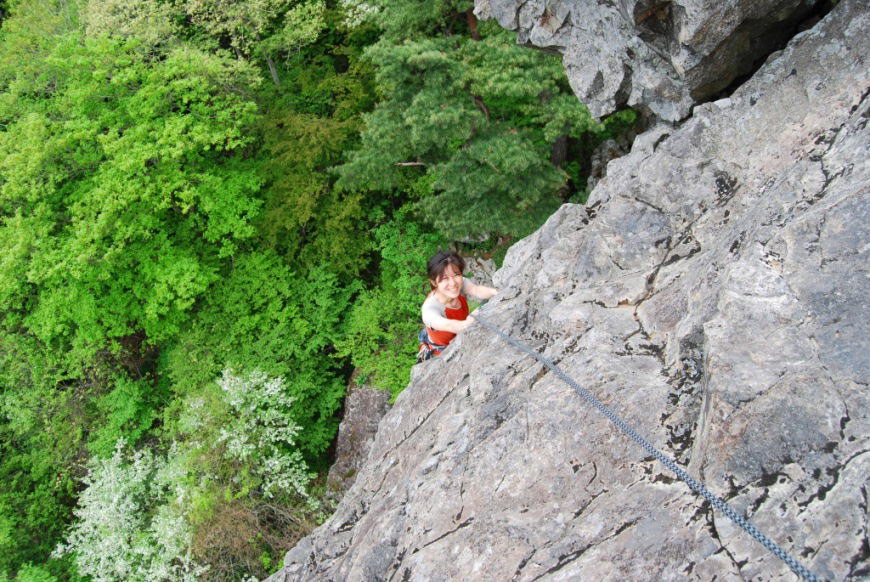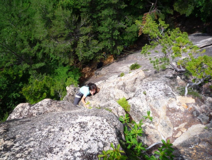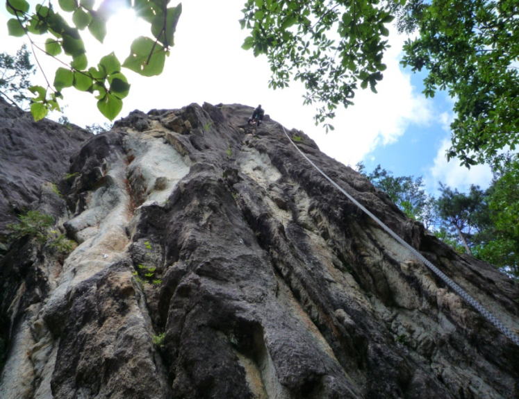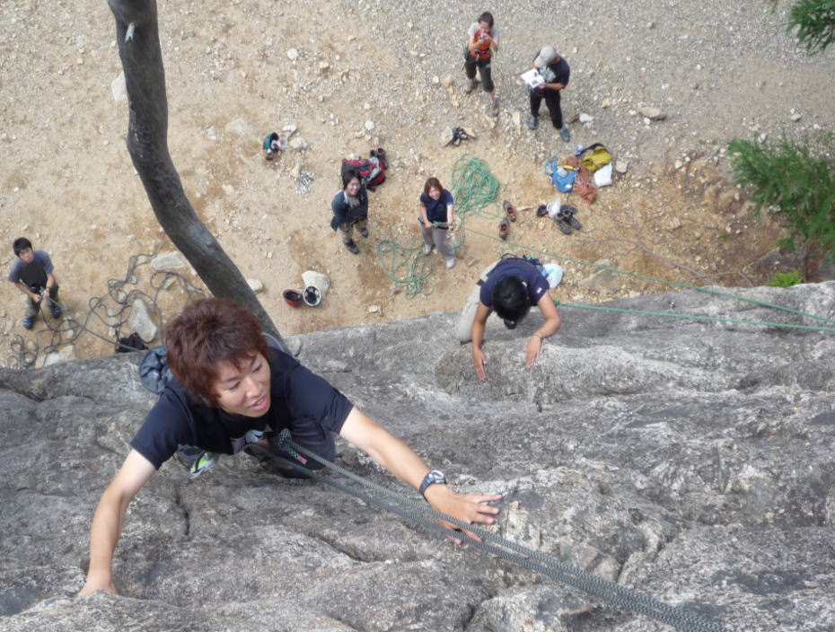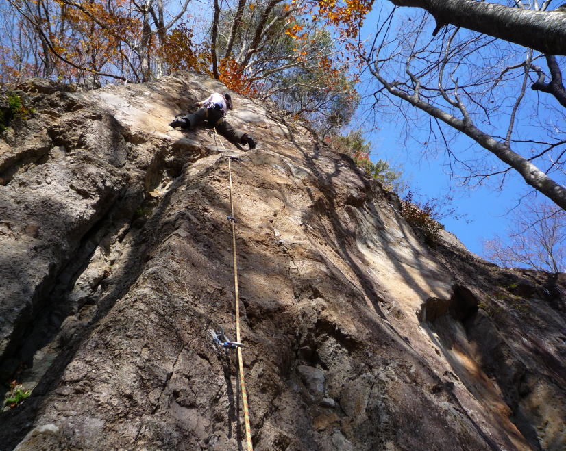 先ずは簡単だけれど高さがあるところで、自然の岩の楽しさなど感じていただく。