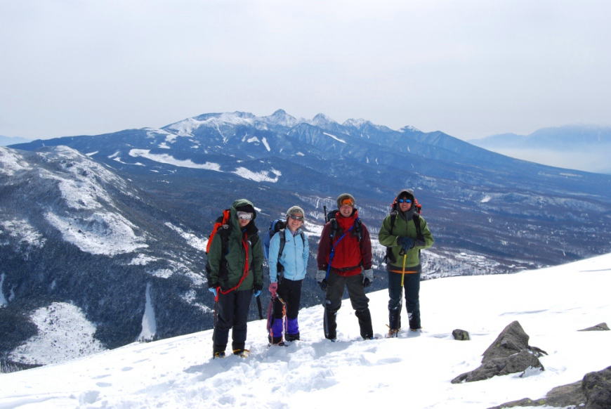 積雪期の蓼科に登るのは初めてだったんですが、雪原状となった山頂からは360度の大展望が。更にはFさんが「ほうとう」の準備をしてくれていて、素晴らしい景色を眺めながら豪華昼食。楽しい雪山登山でした。