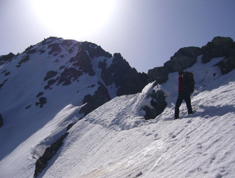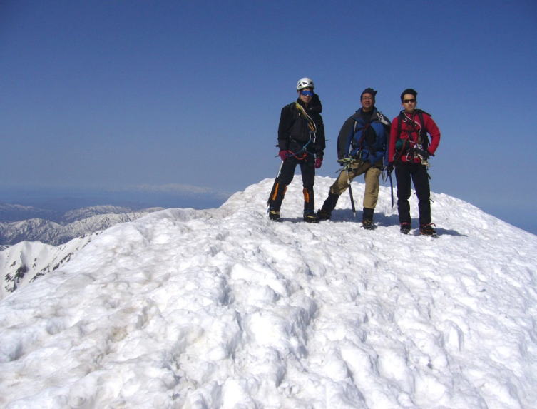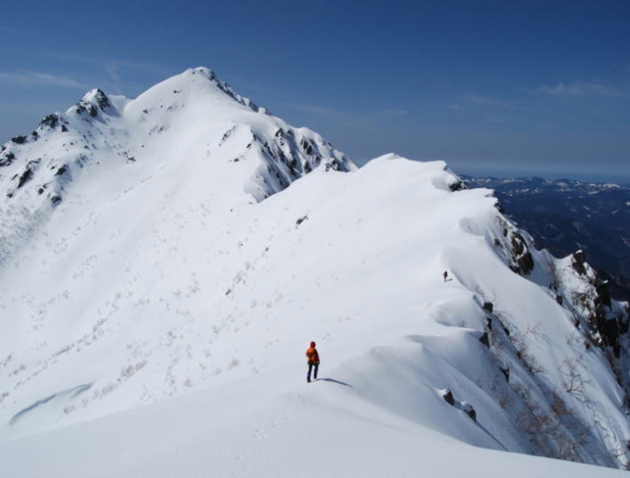 第1岩峰の手前でこれ以上は危険と判断、同ルートを下降。急な雪稜を下るのも決して楽ではありませんが・・・ まあ景色も良く、これも経験ということで楽しかったかな。帰りの関越の大渋滞には凹みましたが。