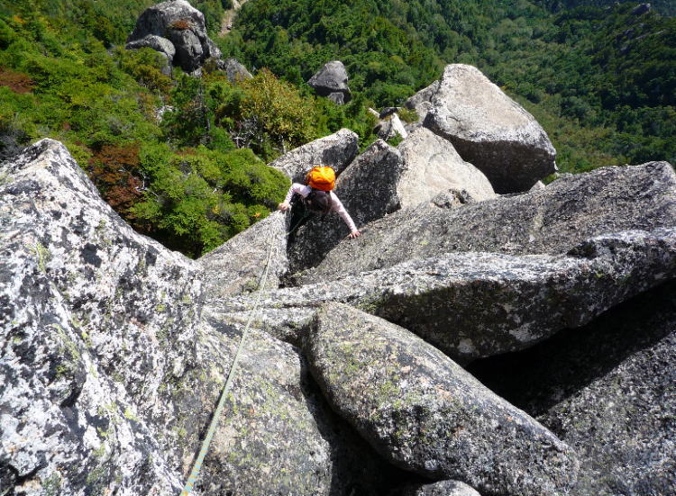 急に秋めいてまいりました。今日はのんびり岩場のお散歩に。大半は5.7以下ですが40mノープロテクションとか、そんな世界です。