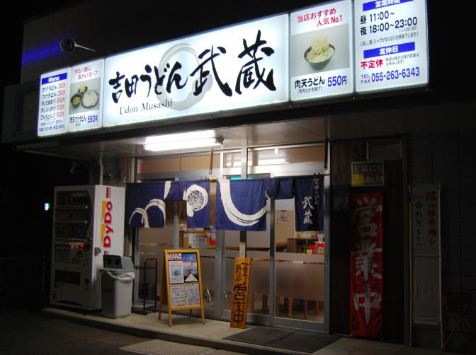 吉田うどん 武蔵 で検索してください。場所は、県立博物館近くです。