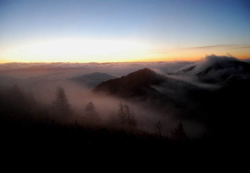 課題の天体観測? 月が明るすぎて、星を見るには不適だったかも。夜明けの情景は綺麗でした。