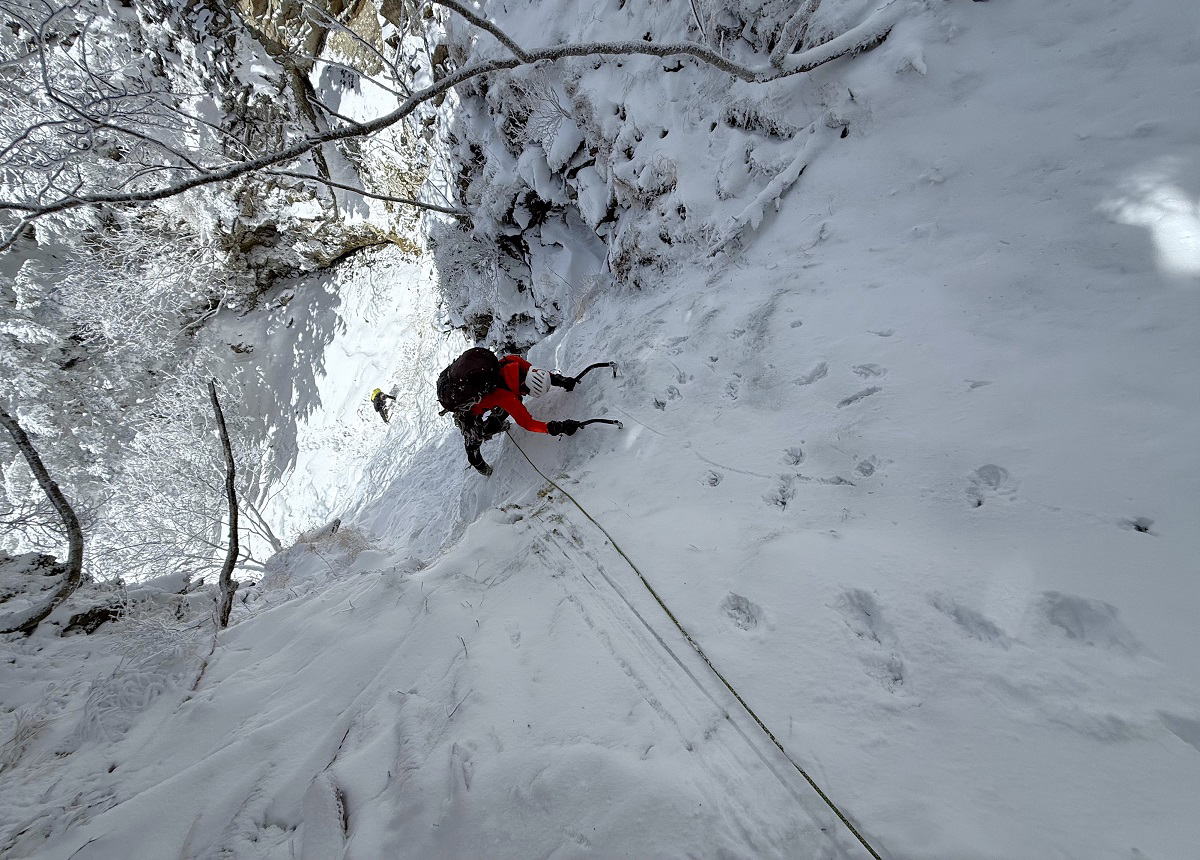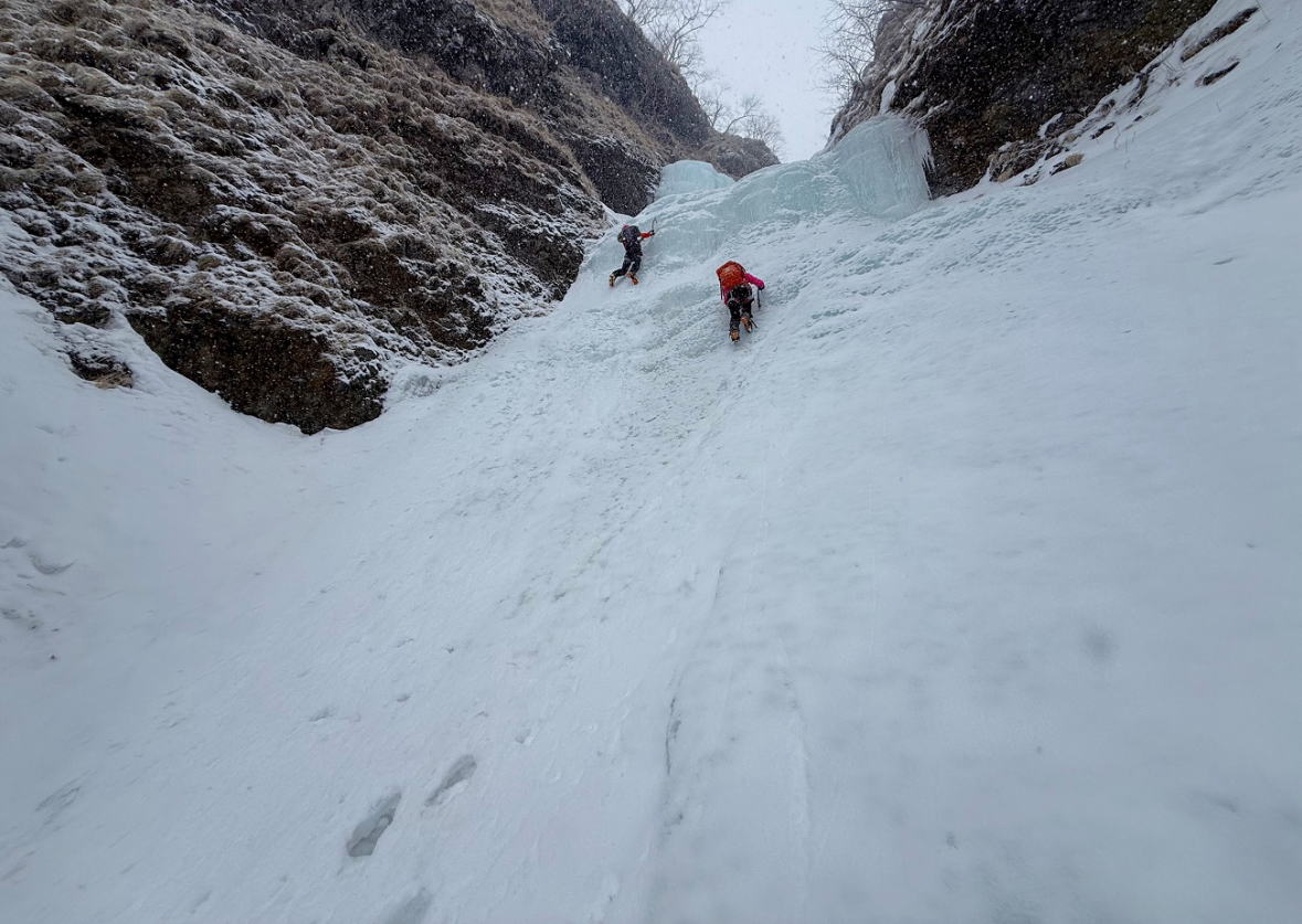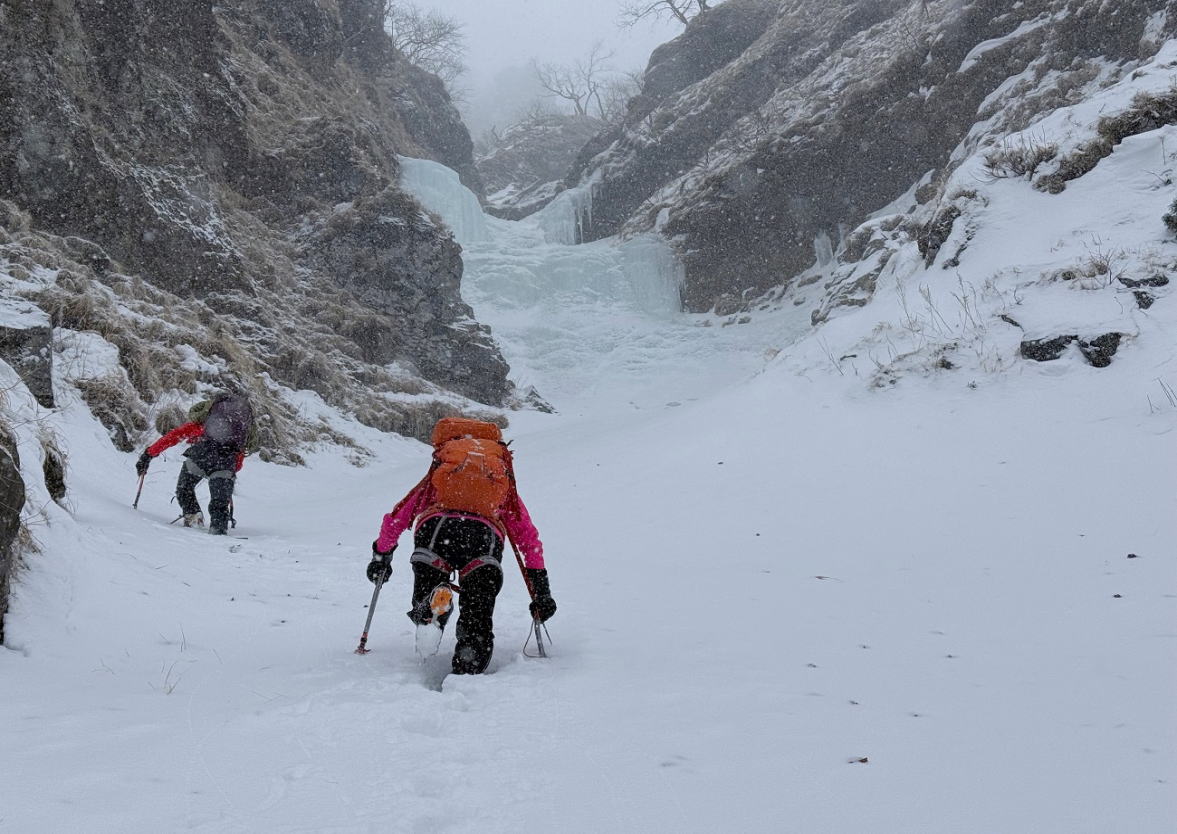 連休初日! 当初は稜線歩きの予定でしたが、強風予測に日和って谷底アイスクライミング活動へと予定変更。