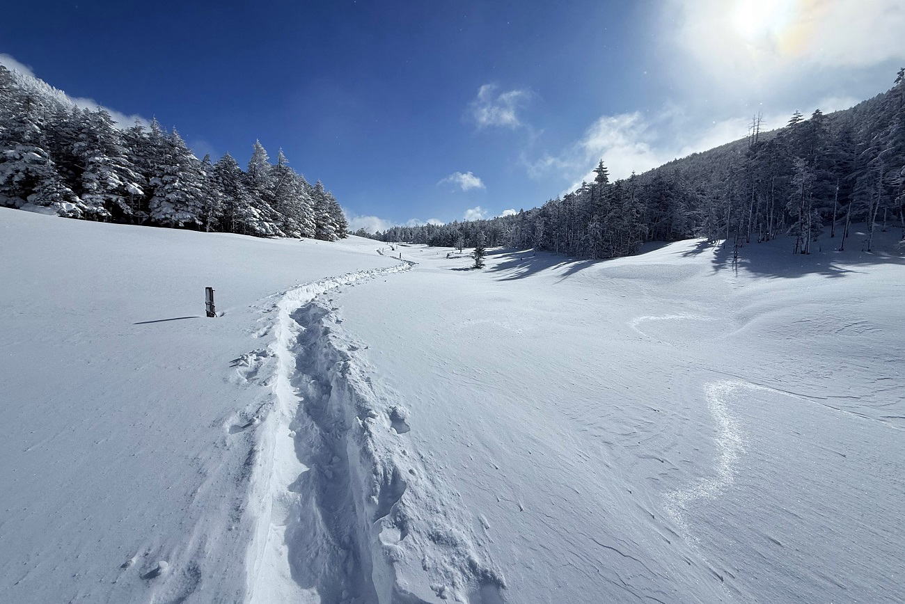 このエリアにしては雪は少なめでしたが、スノーシューの機動力を発揮するには十分な雪量で楽しく歩くことが出来ました。