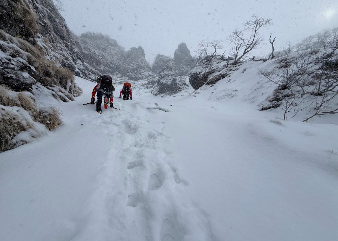 途中までは明瞭なトレース有り、大滝手前からはトレース無しで所々膝下くらいの軽いラッセル。