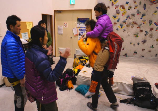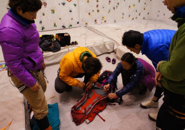 今日はアイゼン使用でのクライミングを練習したりしましたが、平地でも雪が舞うような激しい寒さに昼過ぎでハイタイ。