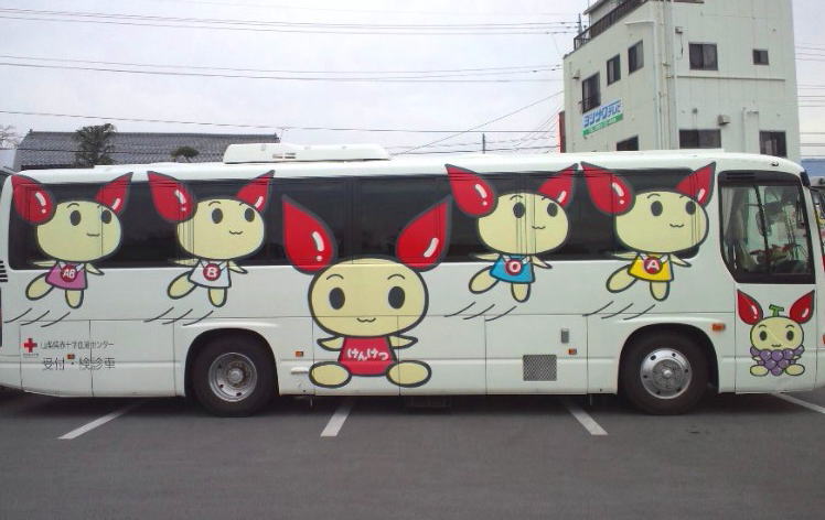 職場に献血車が来ました。バス側面に書かれたキャラクターは「けんけつちゃん」と云うのだそうです。