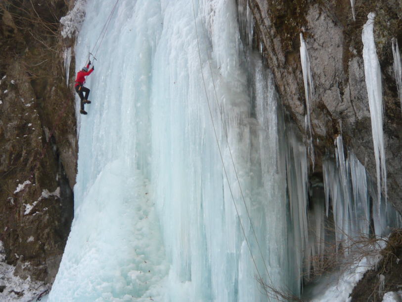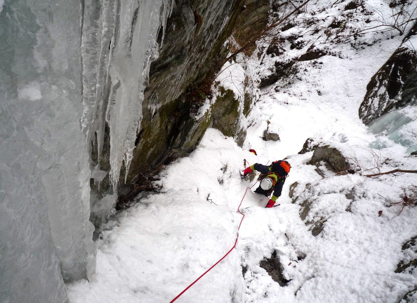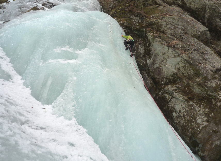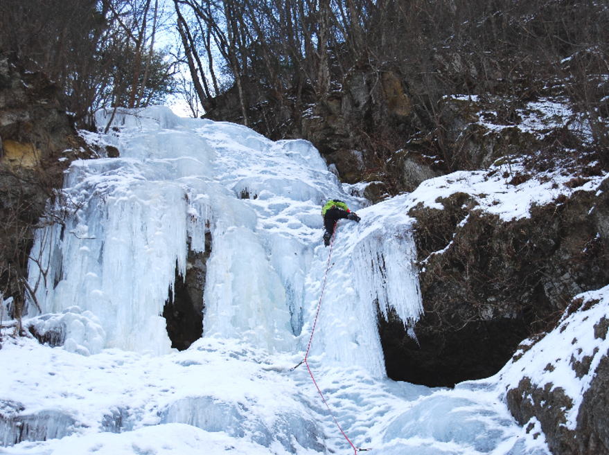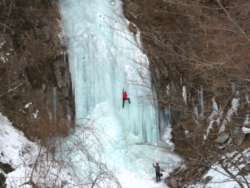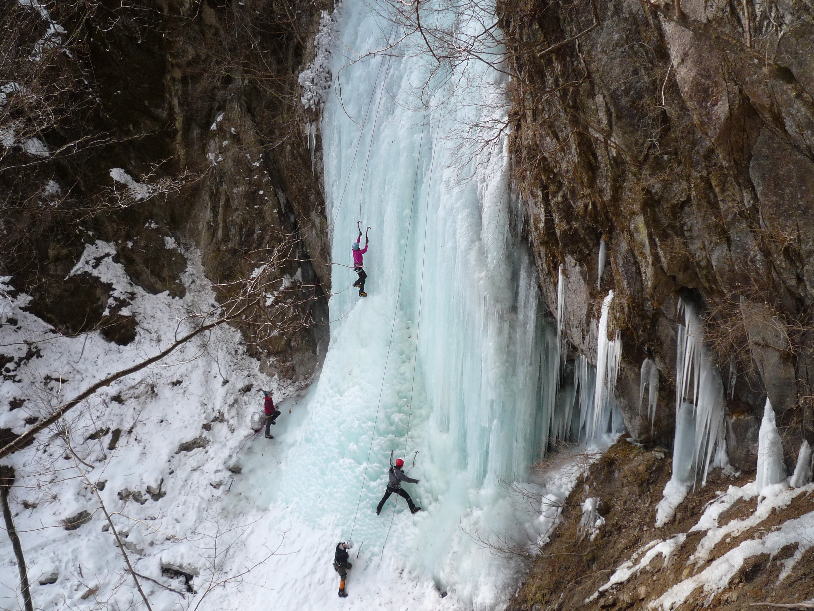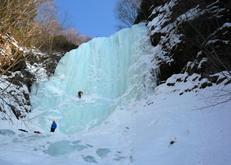 また来た大滝。今年の大滝は垂直のパートが長いなあ。しつこくラインを変えて3本ほど登って大満足。