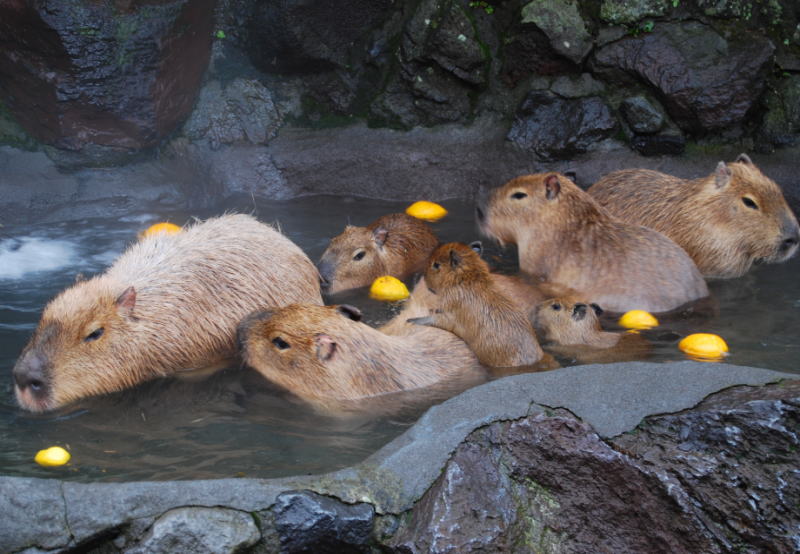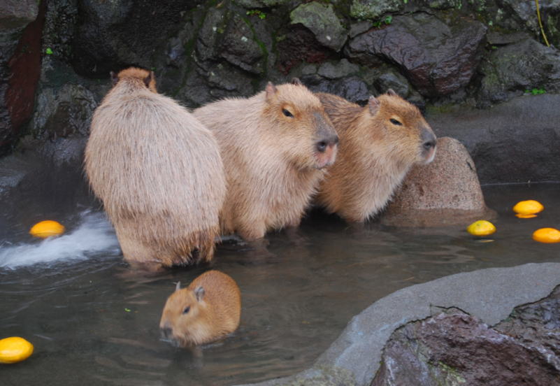 小学生のリクエストに応えて、カピバラさんの入浴シーンを眺めてきました。