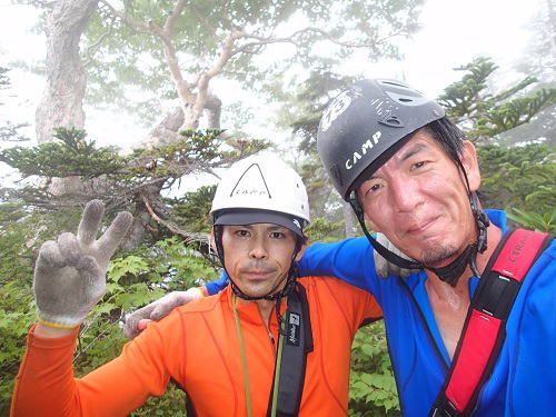 12:40そして最後は急登の藪、、檜尾尾根に出た時はヘロヘロでした〜予想外だった〜。疲れたけどイイ沢でしたね?と握手。