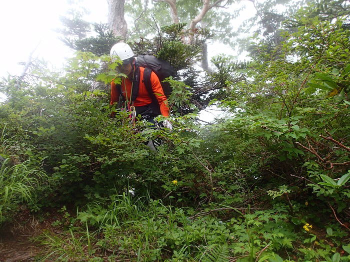 最後のつめが始めは綺麗なカール状で水緑空のコントラストが綺麗だし振り返れば空木岳が美しかったが次第にアザミ(トゲトゲ)の大藪漕ぎ、途中相方がワインをラッパのみしていた。