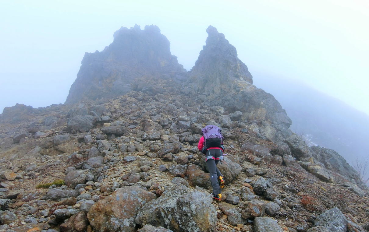 | 先月、初めて那須の山を登った際に、本当は登る予定だった本ルート。 そのときは、わざわざ登らなくても良いかなと思い普通の雪山歩きをしたのですが… 後になってから何だか気になってしまい、結局再度出掛けて登ってきました(^^) 山梨から那須の山はなかなか遠い。 朝の8時半に大丸P到着、支度をして9時前に歩き出す。 天気は曇りで結構な強風、目指す朝日岳もよく見えないが、峠までは先月一般ルートを歩いているので問題なし。 4番(だったかな?)の看板辺りから登山道を外れて右手の沢状に下る。 堰堤手前でアイゼンを履き、10時半くらいに東南稜取付き。 どこでも登れそうなガラガラの斜面なので、雪を繋いで尾根の左手を巻くように進み、適当なところから尾根上へ。 大した傾斜ではないが、とにかくボロい岩の斜面。少しでも雪のあるところを選んで順調に高度を上げ(要はただの歩き)、11時過ぎに門と呼ばれる岩場手前へ。 ここで先行2人Pに追いついたので、暫くの待機。 門から小さなコルへと短い懸垂下降があるが、門の手前と懸垂ポイントとで、計40分くらいは待ったかな? すっかり冷え切った体で10mほどの懸垂、コルからの登り返しが本ルートで唯一の岩登りを10数m。 同行のM様にリードするかと尋ねると、珍しく!譲ってくれるというので、ありがたく私リードで。 一見して傾斜は強く、残置支点も無さそうなので慎重にスタート。 中間で一応カムをひとつ入れましたが、無くてもあまり変わらなかったかな… 意外にも岩は比較的堅く、またホールドは大きいので、見た目に反してあっさりと登って立派なビレイ点へ。 ※懸垂箇所にもハンガーボルトが打たれてました。 M様を迎え、ロープは仕舞い、強風とミゾレ少々の中、細い岩尾根を辿る。 最後にもう一回、ロープは要らない程度の緩い岩場を越えると、そこが唐突に朝日岳山頂標識の裏手でした。 視界がほとんど効かなかったので、山頂目前だったことに気付いておらず、いきなり終了したのでビックリ。 周囲は何も見えませんが証拠写真を撮って、山頂にいても寒いばかりなのですぐ下山。 峠でアイゼンを外して登山道を駆け下り、ジャスト15時に駐車場に戻る。お疲れさまでした〜 車で山を下りると下界は晴れ、時間も早いのでお菓子の城とか梅祭りとかに立ち寄り、最後はお約束の牛タンと餃子で締め。 少し遠いですが良い山域です。また行きましょう。 |