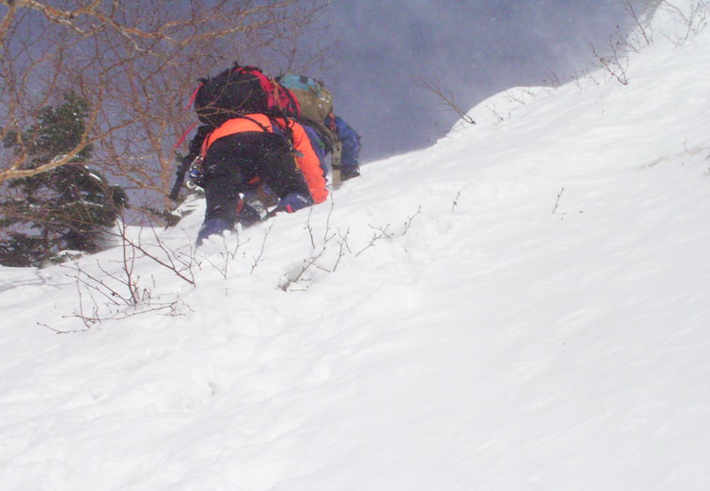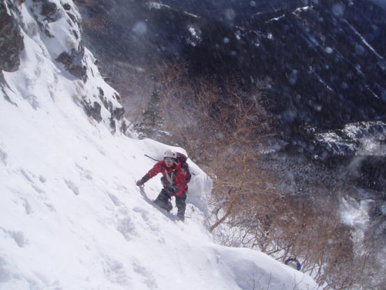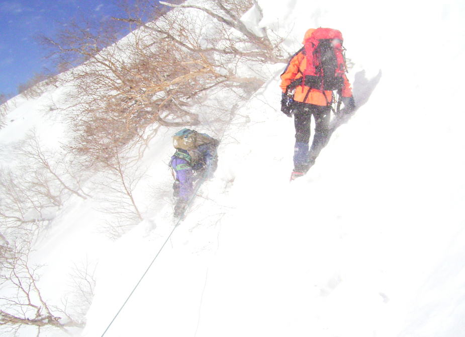 ![]() 雪壁をトラバース |