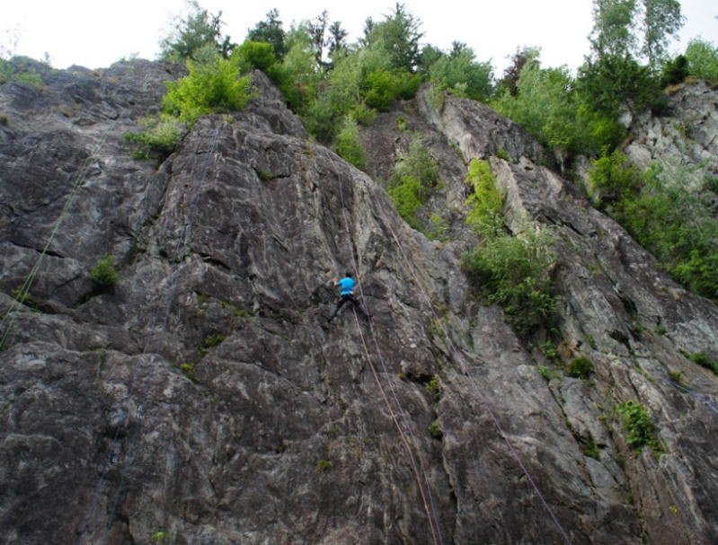 | 7/18 4000m峰をひとつ登る予定でしたが、午後は雷雨のリスクという予報なので断念、ブレバンの岩場へ向かう。 が、岩場に着いた頃に小雨が降りだしてしまい一旦下山、昼過ぎから日が射してきたのでまたまたガイアンの岩場へ。昨日とはエリアを変えて遊ぶ。 |