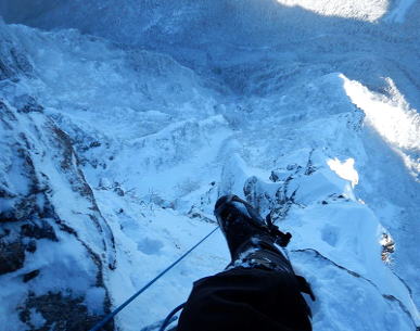 アルパインだからこそ見える景色がそこにある... 今回は年末の冬期登攀の為、八ッ岳阿弥陀北西陵に攀じってきました。 訓練の為あえて降雪直後の悪条件下でアタックをかけた。 前日の偵察ラッセルのトレース付けは深い所ではワカンを装着しても胸まで沈み込みがあり体力の消耗があった。 朝は午前2時半起床、4時スタート 前日の雪で樹林帯迄は前日のトレース付けで順調だったが稜線の尾根から取り付き付近までラッセルに苦しめられた。 後続二人組が違うトレースラインを使い我々より先に壁に取り付きしたスタートした。 彼等は登れるクライマーの匂いがした... 彼等のラインで攀じった阿弥陀北西陵2P目は リッジではなくルンゼをラインにした彼等のオリジナルラインであり私もそのラインに惹き付けられ攀した... と言えば格好が良いのだが、結局は私のルートミスから始まってしまった挑戦であった。 結局60メートル中間支点もなく作成出来る箇所もなく、途中で切れる場所もなく3ピッチ目の取り付きまで攀り切るしかなくなり、 バデイ が私のクライミング状況を判断、ビレイ解除しトラバース間を移動20メートル横のビレイ点で再ビレイ。 その間はノービレイで緊張の刻であった。 トラバース間を移動して60m ザイル一杯プラス20m 計80m の垂直のミックスクライミングであった。 本当に私にとっては厳しい時間と条件であった...髪の逆立ちを感じた。 先行の二人組は冬期黒部横断を出来る本物であった。 中岳沢下降...行者小屋着12:30 私のルートミスから本来は真似てはいけない彼等と同じラインを攀ってしまったのだが、 精神力がついたのと同時に本物のクライマーのラインはやはり違う!と、つくづく感じた。 今回はバディの体力とビレイ時の臨機応変の対応に助けられた。感謝します! ありがとう! |