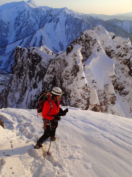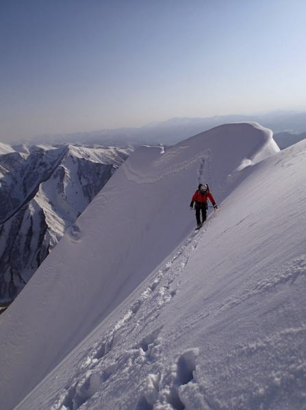 15日 二人共、初谷川岳バリエーションなので、一ノ倉沢まで偵察に行く。 避難小屋に着くと長期滞在されているkさんに話を伺っていると次から次に東尾根途中敗退の方々が入って来られたので、状況を聞く。 中間稜単独敗退の方も居られた。みなさん口々に雪質が悪く、時間も無くなって戻って来たと言っておられた。 第二岩峰あたりまで行ったらしい。中間稜は急斜面に15センチの新雪と、所々にクラックも走っているとの事! 明日は東尾根に決定しました。 16日 2時起き3時駐車場出発。自力で突破してヤる〜と気合が入ります。 避難小屋5時出発〜3パーティー抜いてシンセンのコルで日の出〜第二岩峰直登だと思うが少し悪く感じた。 ここから先も踏み跡が続いており、ありがたい気持ちと第一登を持って行かれた感が交錯する。 二ノ沢側にクライムダウンする所が緊張した。第一岩峰は巻きトレースがあったが、ここまでトレースのおかげで時間が早すぎて、もう終わりって感じだったので直登して遊ぶ。 雪を払いながら登るので、緊張感あって面白い。 最後の雪庇も先行者の素晴らしいラインどりで、難なく通過〜山頂9:30〜西黒尾根下山〜12時半くらいに指導センター着 ここで同じ会のF氏とバッタリ会う!なんと今日の第一登パーティーが知り合いだったとは驚いた 今回の東尾根、全てノーロープで行けたが、日の出前までにどれだけ先に進めるかが重要と感じた。雪質がすぐに悪くなります。 あと、中間稜は今回行かなくて正解だったと思う。東尾根から見たら、キレッキレの悪い雪稜間違いなし、ノートレースでした!古屋さん、良くあんな所行きましたね〜 中間稜は来年なんとしても行きたい!イイ課題見つけました。中村さんいつも休み合わせてもらってありがとうございます。 |